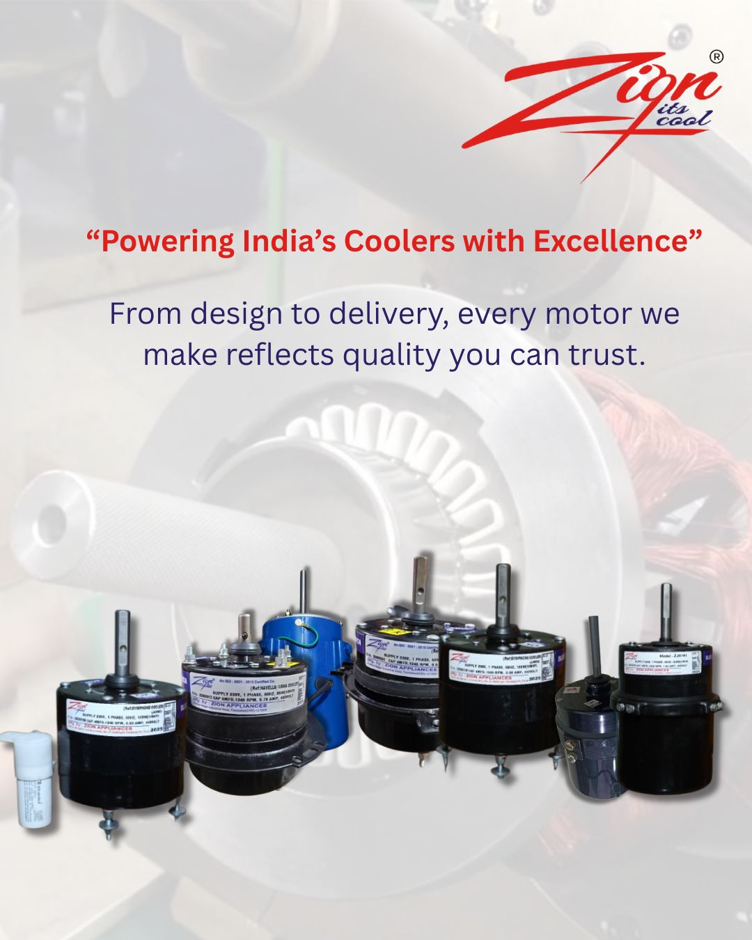 Zion Appliances — Leading Manufacturer and Supplier of High-Performance Cooler Motors | Precision Engineered for Efficiency, Low Noise & Long Life | Custom Motor Solutions Available for All Cooler Models | ISO 9001 Certified · BIS Approved · Made in India | Delivering Quality and Trust Across Delhi NCR and Beyond.